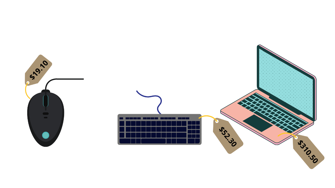 | Total cost of items | \= 1.20 + 0.80 + 2.20 |