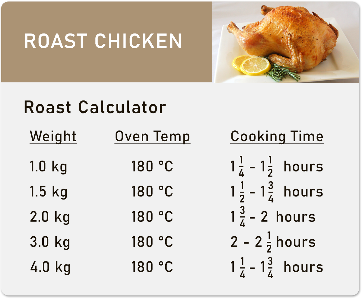 Gary is cooking 3.0 kilograms of roast chicken and wants it to be ready by 1:15 pm.